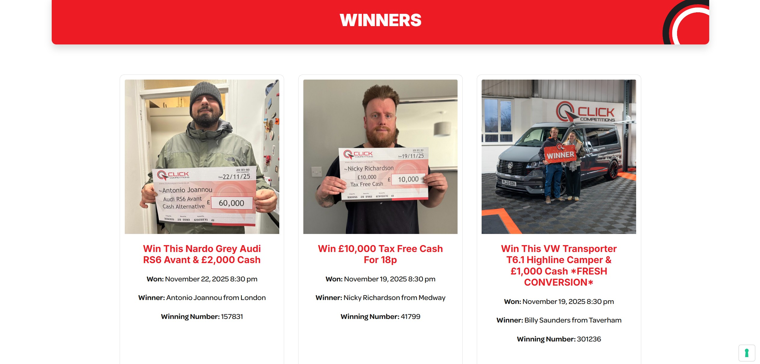 Click Competitions has been running for 5 years now (or at least they were incorporated in 2020), and as they frequently post and properly showcase all ticket numbers and names from their draws (at least as of late, not always) – and also show pictures the winners of their competitions at least most of the time… I think it’s safe to say they do have a good track record.