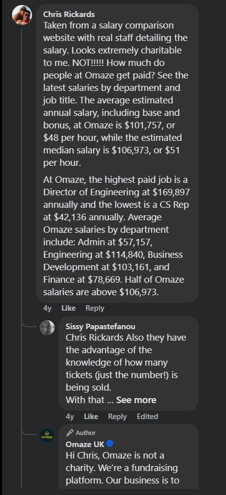 Omaze is more than happy to focus on the charity side of things for the sake of promoting the business and their draws, but if some points out that they are not as charitable as they should be, they will say that they are “not a charity”. So, the best of both worlds for them I suppose.